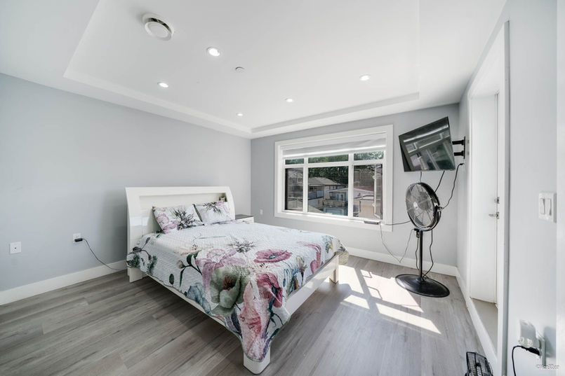 Custom-built 3-level family home with a fully finished 3-bedroom basement suite and laneway house in the desirable Knight and East 33rd area. Features a bright, open-concept main floor layout with a bedroom ideal for extended family or a home office. Designer kitchen with island and stainless steel appliances, oversized tile flooring, and stylish glass railings. The top floor boasts 3 bedrooms and a breathtaking private rooftop deck with mountain views. The primary bedroom includes a spacious walk-in closet and an ensuite with double sinks and a rain shower. Stacked laundry. Two sump pumps for added peace of mind. Conveniently located near Kensington Park and Community Centre, T&T Supermarket, and transit.